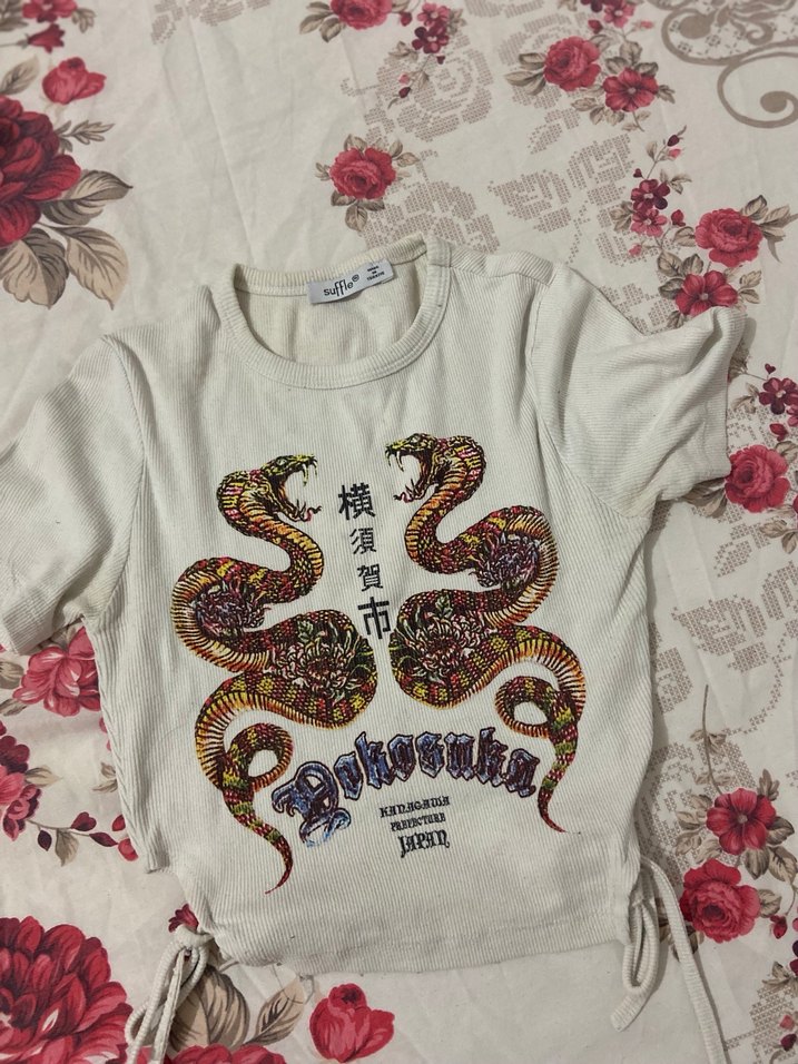 Kız Çocuk Beyaz Yılan Desenli Tişört