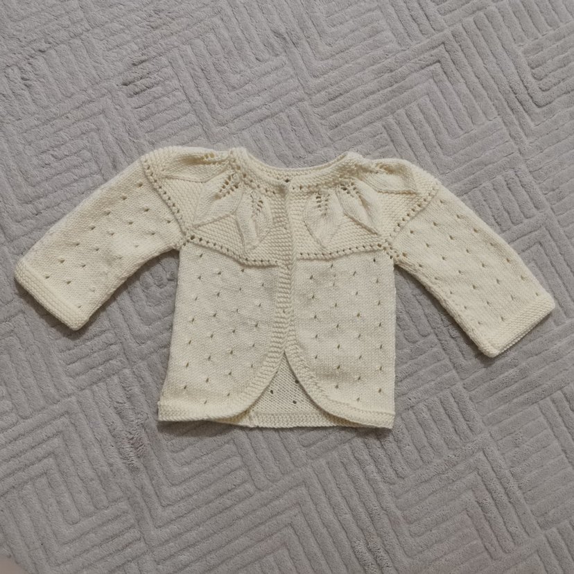 Kız çocuk için bohem tarzda, uzun kollu, beyaz ve örme dokulu, vücuda oturan triko hırka.