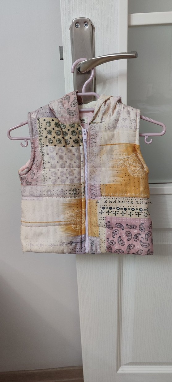 Kız çocukları için pastel tonlarda, bohem ve retro desenli, kapüşonlu ve fermuarlı kolsuz yelek. Rahat ve bol kesimlidir.