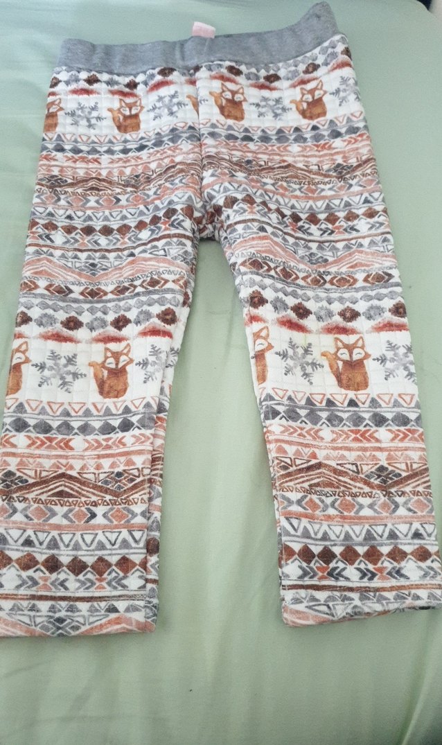 Kız çocuk için triko dokulu, bohem desenli fitted tayt. Kahverengi ve gri tonlarda yumuşak sentetik kumaş kullanılmış.