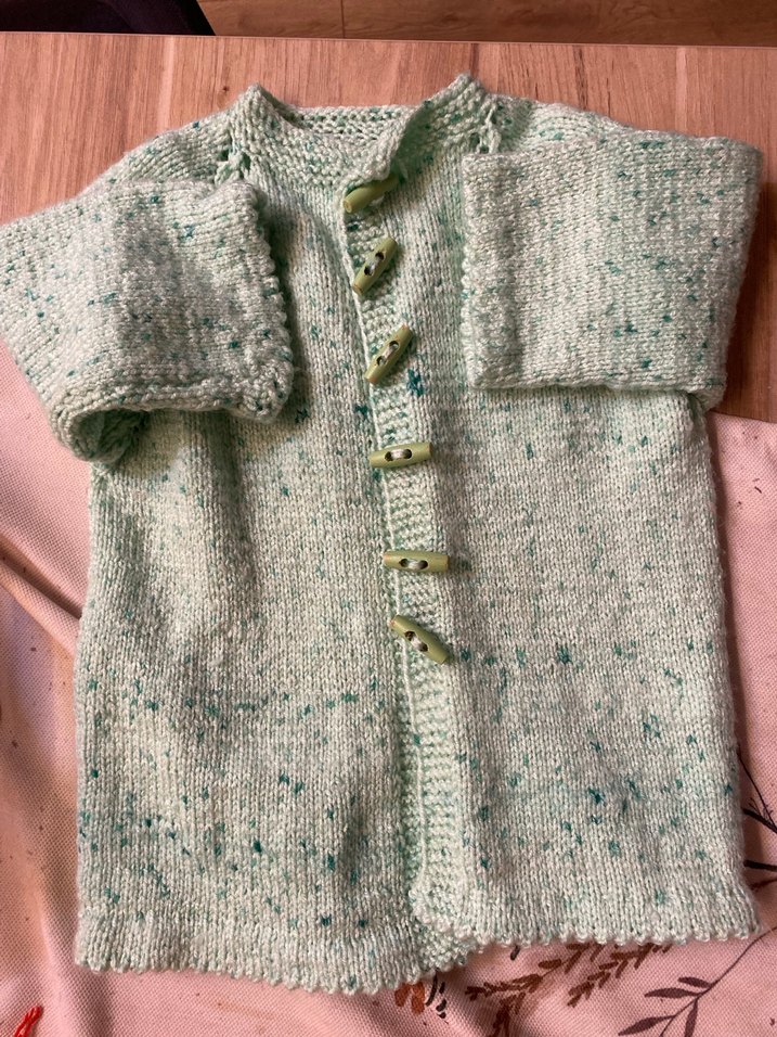 Pastel yeşil renkte, düğmeli, uzun kollu, bol kesim bohem tarzı kız çocuk hırkası. Marka temsili
