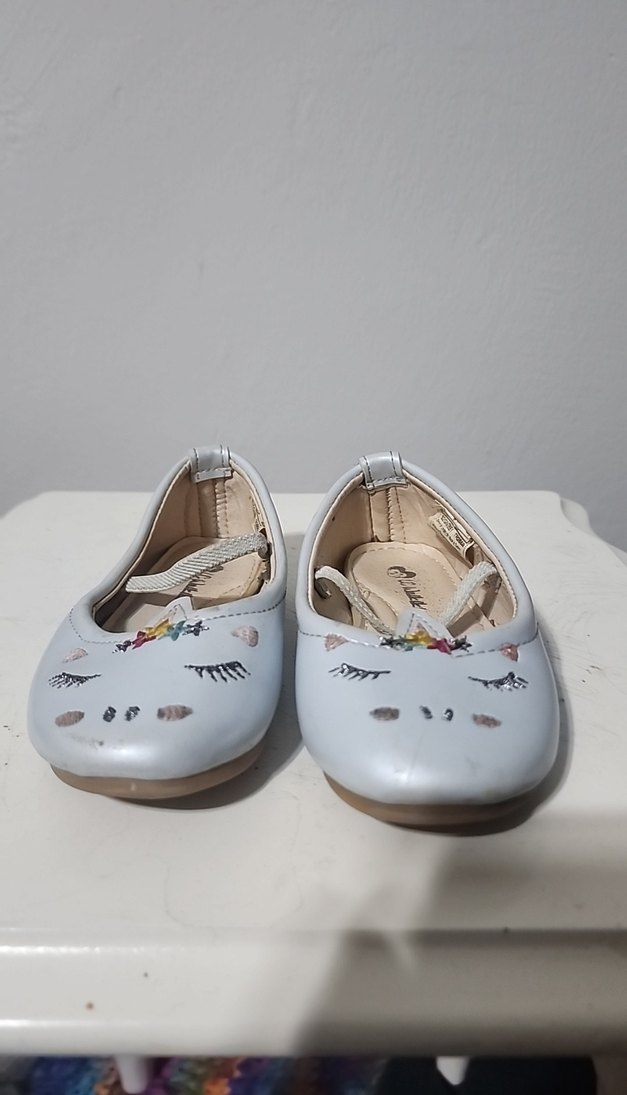 Kız çocukları için bohem tarzda, beyaz nakışlı ve tokalı kayışlı babetler. Rahatlık için yumuşak ve esnek kauçuk tabanlıdır.