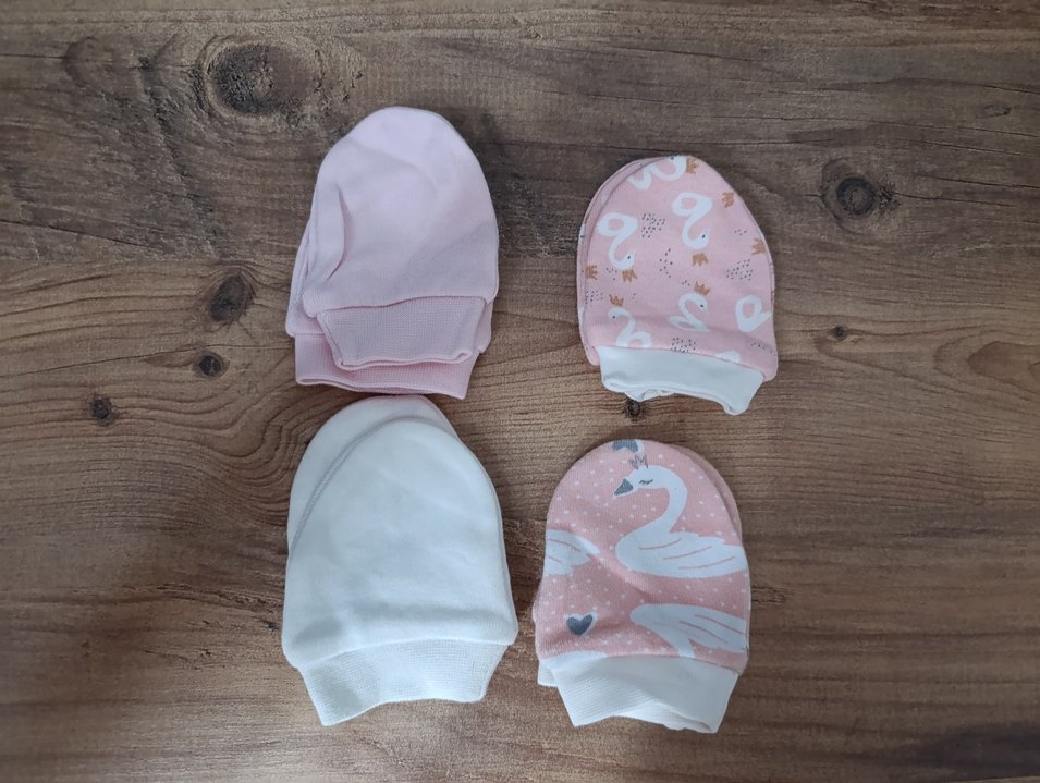 Kız çocuklar için pastel pembe ve beyaz renklerde, yumuşak ve sıcak kumaştan bohem tarzda triko eldivenler.