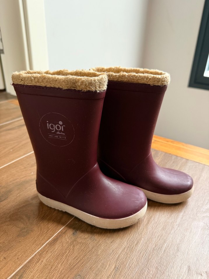 Bordo renkli, kürklü detaylı kız çocuk lastik çizme. Üst kısmında 'igor' marka logosu bulunur, sıcak tutar ve desensiz tasarıma sahiptir.