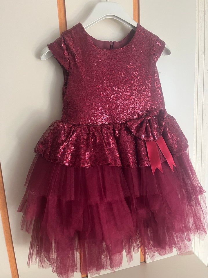 Kız Çocuk Bordo Parlak Fırfırlı Elbise