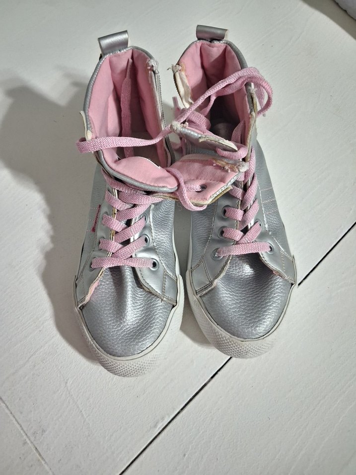 Kızlar için gri dış yüzey, pembe iç detaylar ve bağcıklarla, tokalı tasarıma ve kauçuk tabana sahip sokak stili spor ayakkabılar. Orjinaldir..ürün birkaç kez kullanıldı r.video ve fotolara ekledim lütfen dikkatli inceleyiniz.Sorunsuzdur.Marka temsilidir.LCw markadır #adidas#adidassporayakkabı#koşuayakkabısı#yürüyüşayakkabısı#sporayakkabı#runfalcon#adidasrunfalcon#puma#guess#nike#skechers#convers