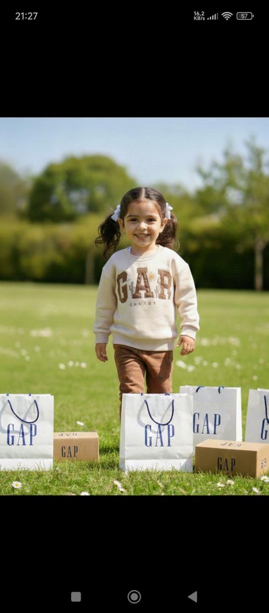 Kız çocukları için bol kesim, uzun puff kol ve bisiklet yaka. Yumuşak ve sıcak kumaştan, önünde açık camel tonlarında baskılı GAP logosu bulunur. Trend sokak stili için uygundur.
