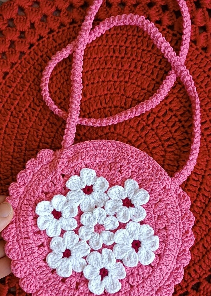 Pembe çiçekli dekoratif kız çocuk çanta