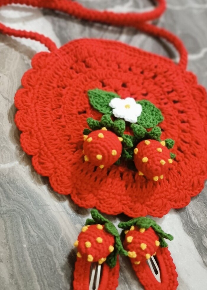 Kırmızı çilekli kız çocuk çanta toka setim