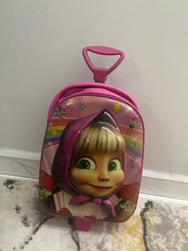 Maşalı çocuk çekçekli çanta anasınıfı ıcın uygundur bır kaç kez kullanıldı sorunu yok
