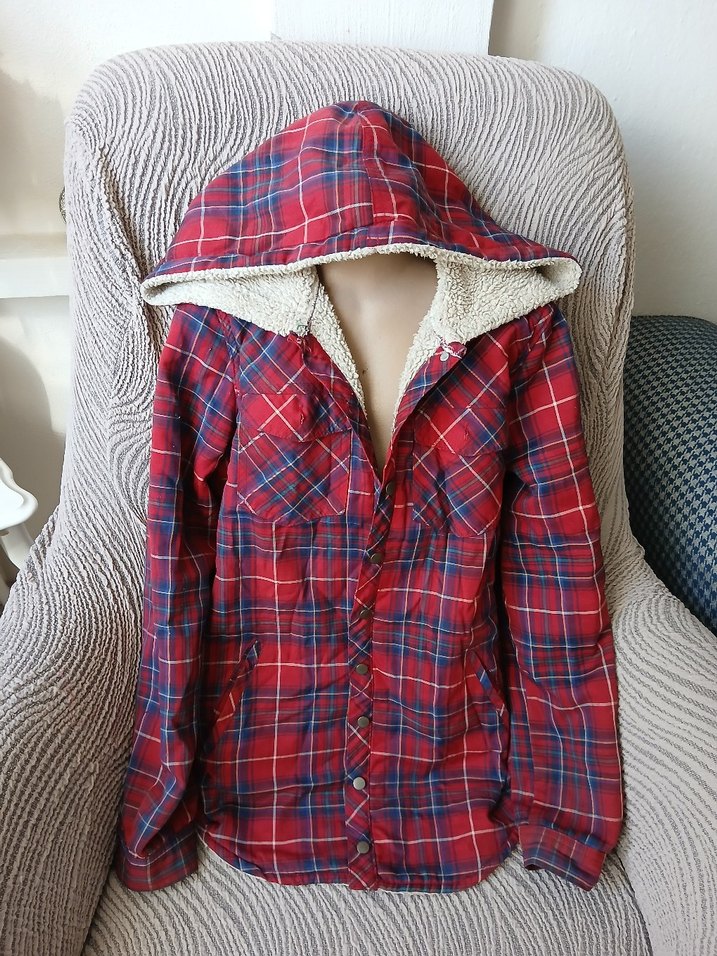 Kırmızı ve gri kareli kadın gömlek, yakalı, uzun kollu ve düğmeli. Kapüşon içi yumuşak ve sıcak kumaşla kaplı, bol kesim, günlük rahat sokak stili için uygun.son fotoda fiyatı mevcuttur 60 eurodur çok uygun fiyata veriyorum