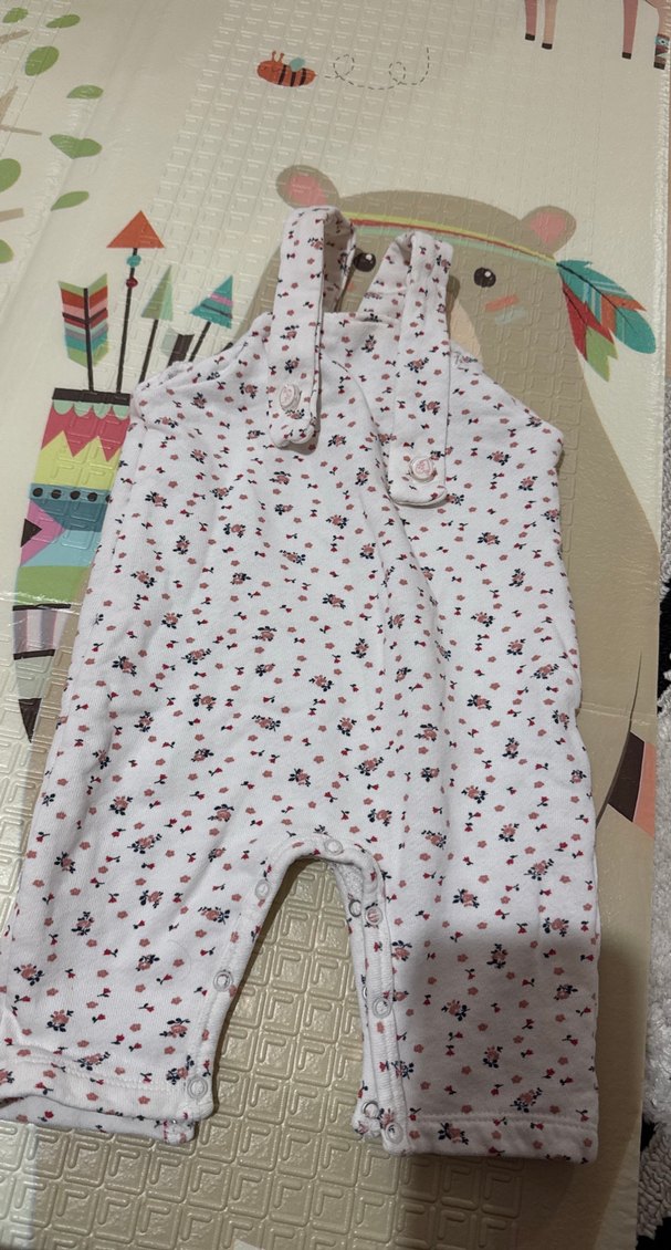 Kız çocuklar için çiçek desenli, düğmeli askılı ve kolsuz, yumuşak sentetik kumaştan yapılmış tulum. Sokak stiline uygun. Slopet