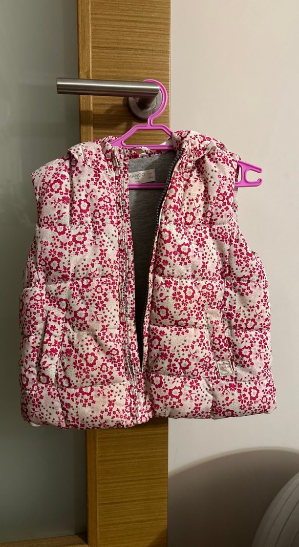 Kız çocukları için kolsuz, renkli çiçek desenli, yakalı ve fermuarlı yelek. Yumuşak ve sıcak kumaştan, sokak stili için uygun.4 yaşa kadar uyumlu