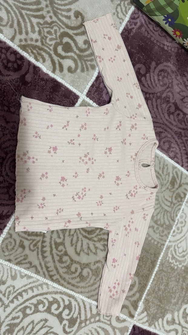 Kız çocuk için uzun kollu, bisiklet yaka, ince ve esnek sentetik kumaştan yapılmış çiçek desenli, pastel bej renkli, vücuda oturan bir bluz. Ürün kullanılmadı aldığımda büyük gelmişti yıkayıp kaldırmıştım taşınırken unutmuşum temizdir gönül rahatlığıyla alabilirsiniz üründe iade yoktur.