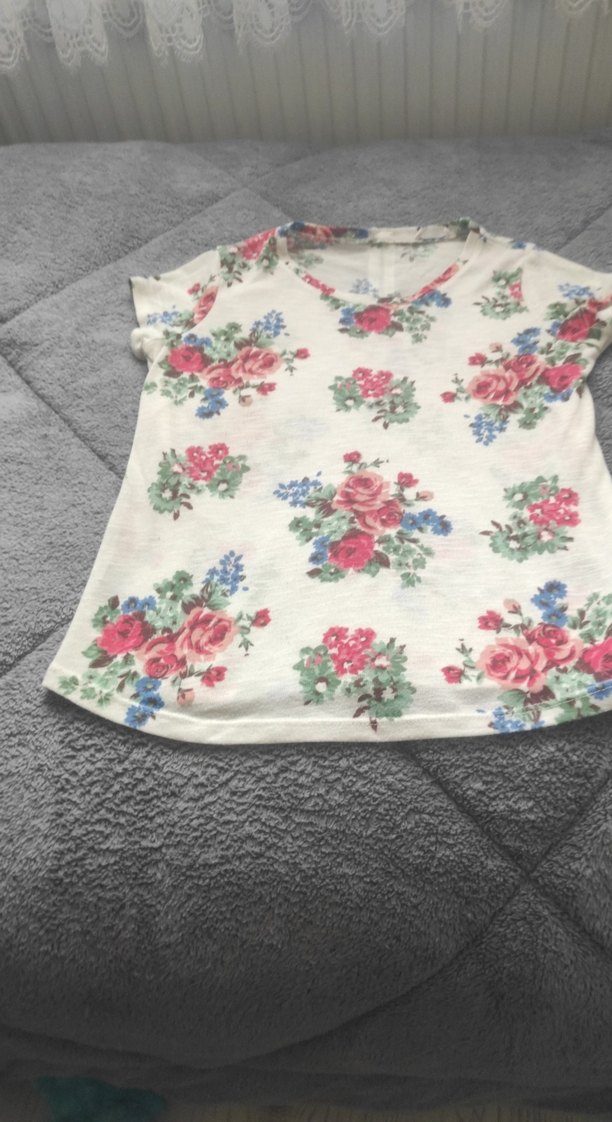 Kız Çocuk Çiçek Desenli V Yaka Tişört