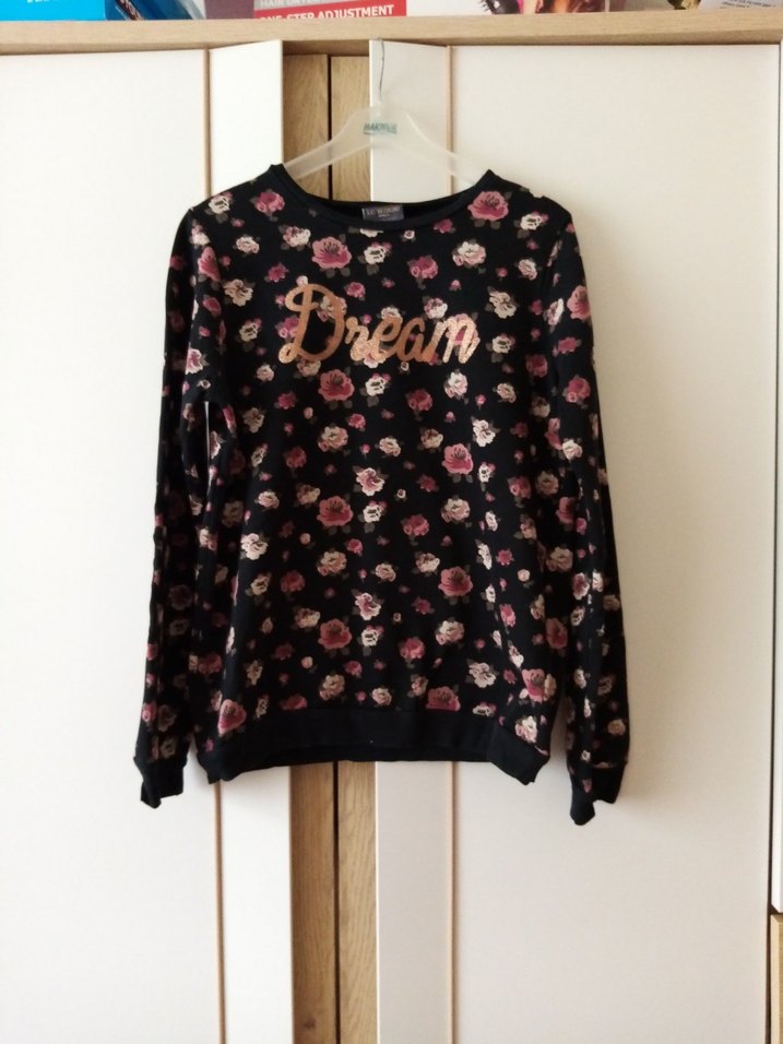 Kız çocuk uzun kollu ve bisiklet yaka, bol kesim pembe çiçekli sweatshirt. Önünde "Dream" yazısı bulunur, rahat sokak stili için uygundur. Dolabımda aynı yaşa uyumlu ürünler mevcut bakabilirsiniz ürün birleştirebilirim #sweatshirt