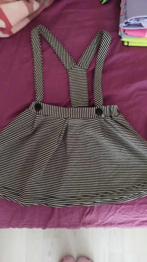 Kız Çocuk Çizgili Askılı Etek