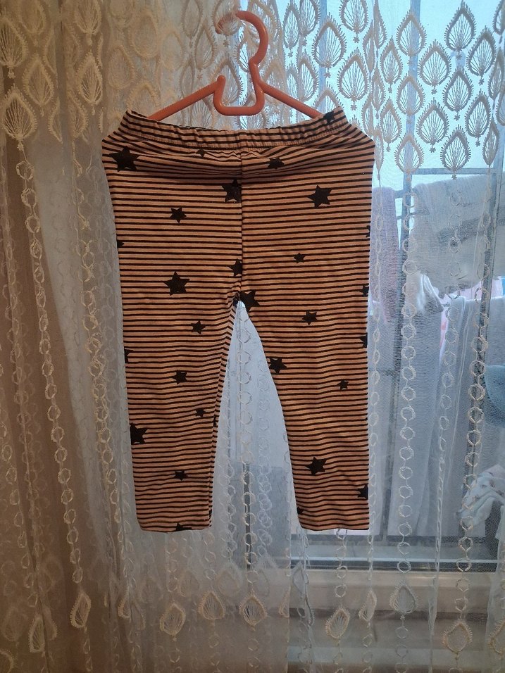 Koyu kahverengi çizgili ve yıldız desenli, elastik bel bantlı kız çocuk taytı. Trend sokak stili için uygun, rahat ve şık.