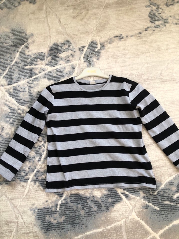 Kız çocuk için uzun kollu, bisiklet yaka ve bol kesim kazak. Gri tonlarında çizgili desene sahip, rahat ve yumuşak dokulu kumaştan üretilmiştir. 10-11 yaş için uygundur