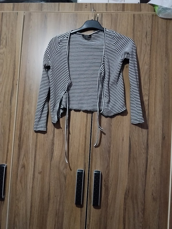 Kız Çocuk Çizgili Kemerli Uzun Kollu Bolero