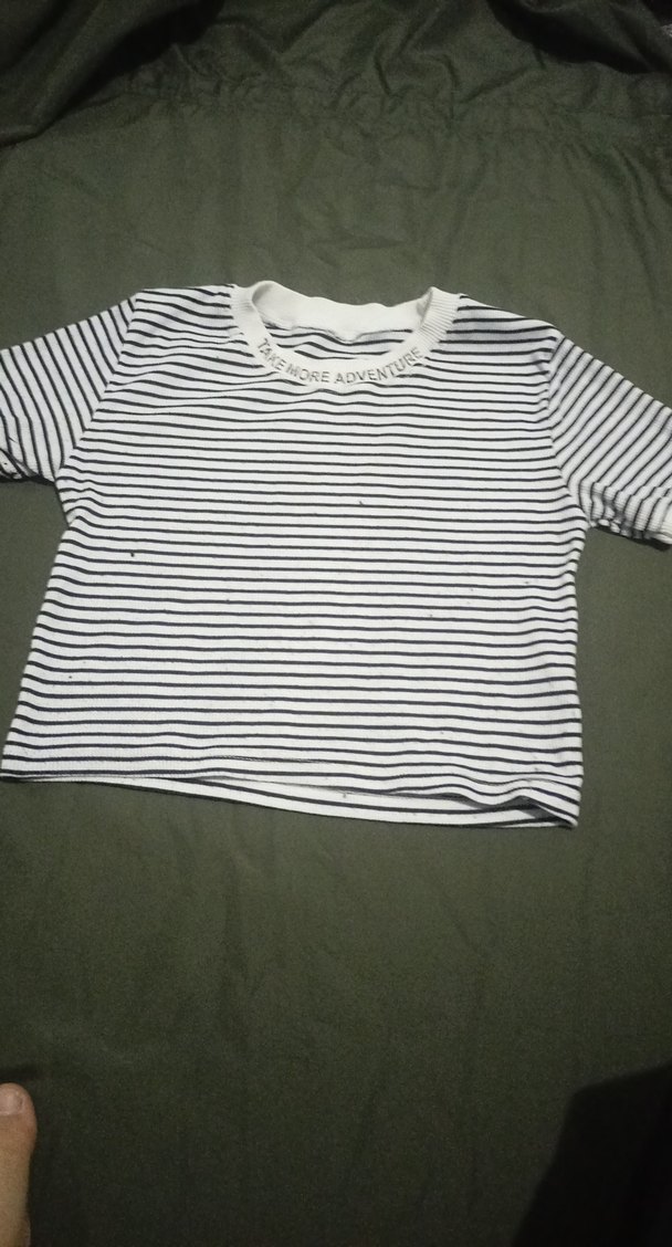 Kız çocukları için kısa kollu, kayık yaka, pamuklu kumaştan yapılmış, beyaz ve gri çizgili bol kesim tişört. Trendy ve rahat sokak stili için uygundur.