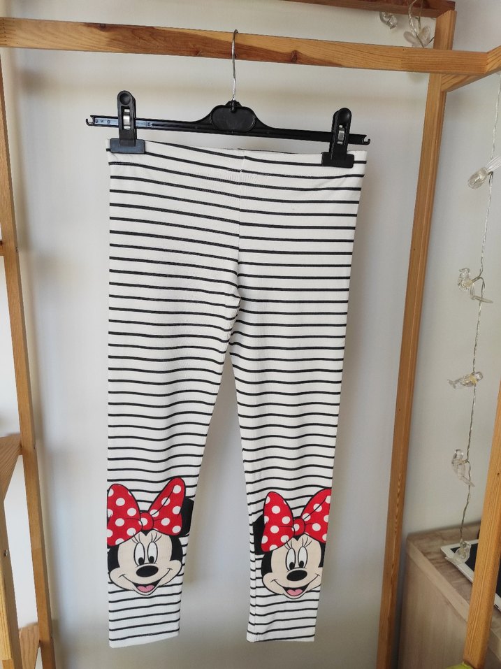 Etiketi kesik 9-10 yaş uyumlu.. Disney marka çocuk taytı, paçalarında Minnie Mouse figürleriyle dikkat çekiyor.