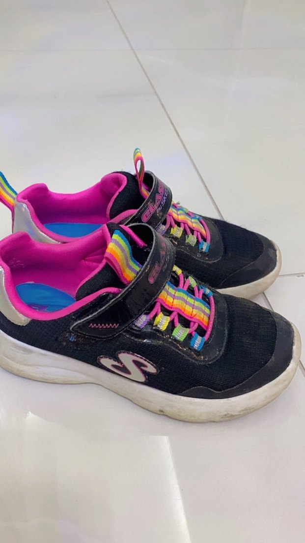 Kız çocukları için çok renkli batik desenli, bağcıklı ve cırt cırtlı spor ayakkabılar. Kauçuk tabanlı, sokak modasına uygun tarzda.