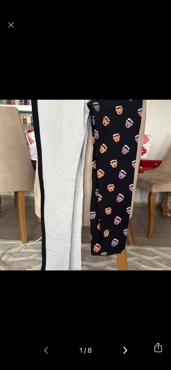 Gri sentetik kumaştan, çok renkli baskılı ve düğmeli, kız çocukları için dar kesim tayt, sokak modasına uygun. Rüya ikisi için geçerli