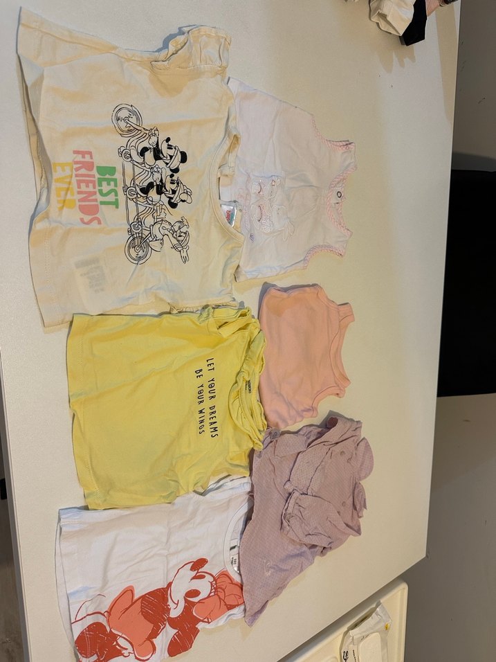 Pamuklu, bol kesim, çok renkli baskılı kız çocuk tişörtleri, askısız yaka ve pastel tonlarda, günlük sokak stili için uygundur. Gömlek hiç giyilmedi
