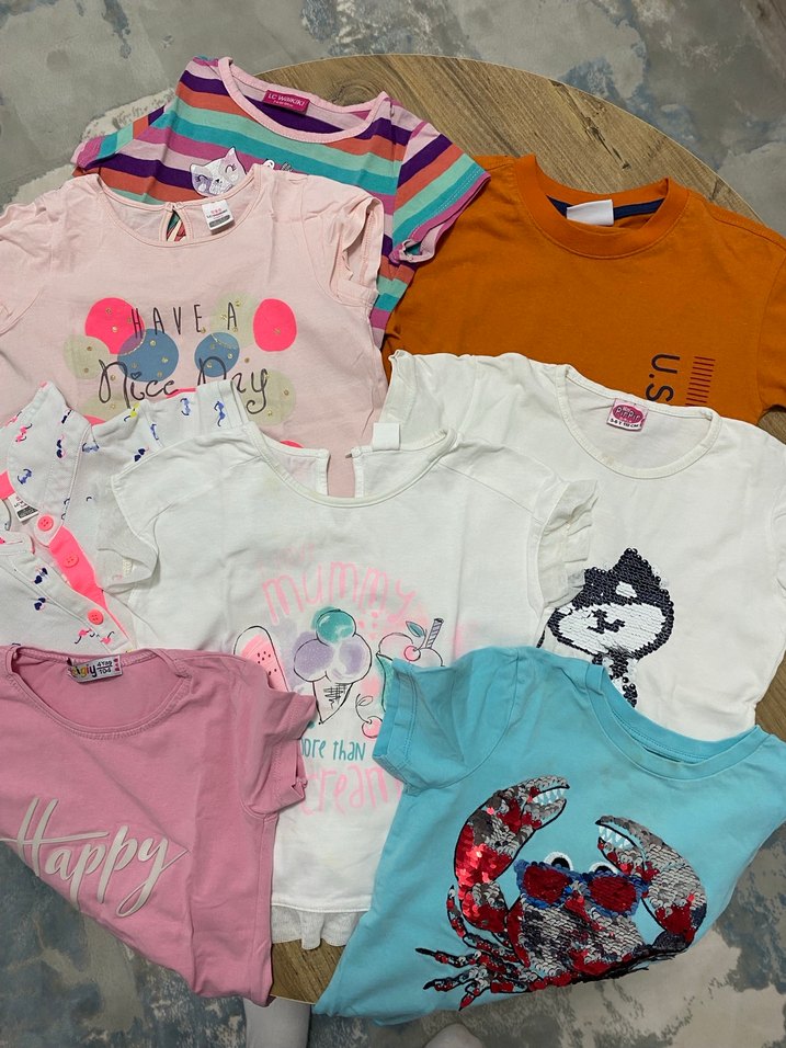 Kız çocukları için kısa kollu, bisiklet yakalı, bol kesim pamuklu tişörtler. Çok renkli pastel baskılarla günlük sokak modasına uygun.