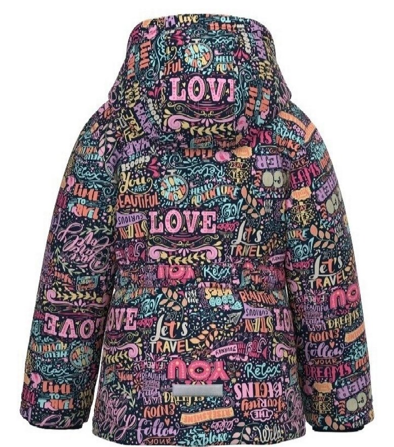 Sentetik kumaştan, triko detaylı, bol kesim kız çocuk montu, bohem ve retro esintili çok renkli baskılarla ve boğazlı yaka ile tasarlanmıştır.
