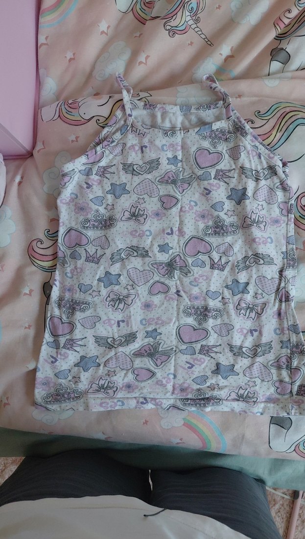 Kız çocukları için askısız, dantel detaylı, bol kesim, çok renkli pastel desenli sentetik kumaştan atlet. Bohem ve retro tarzına uygun.
