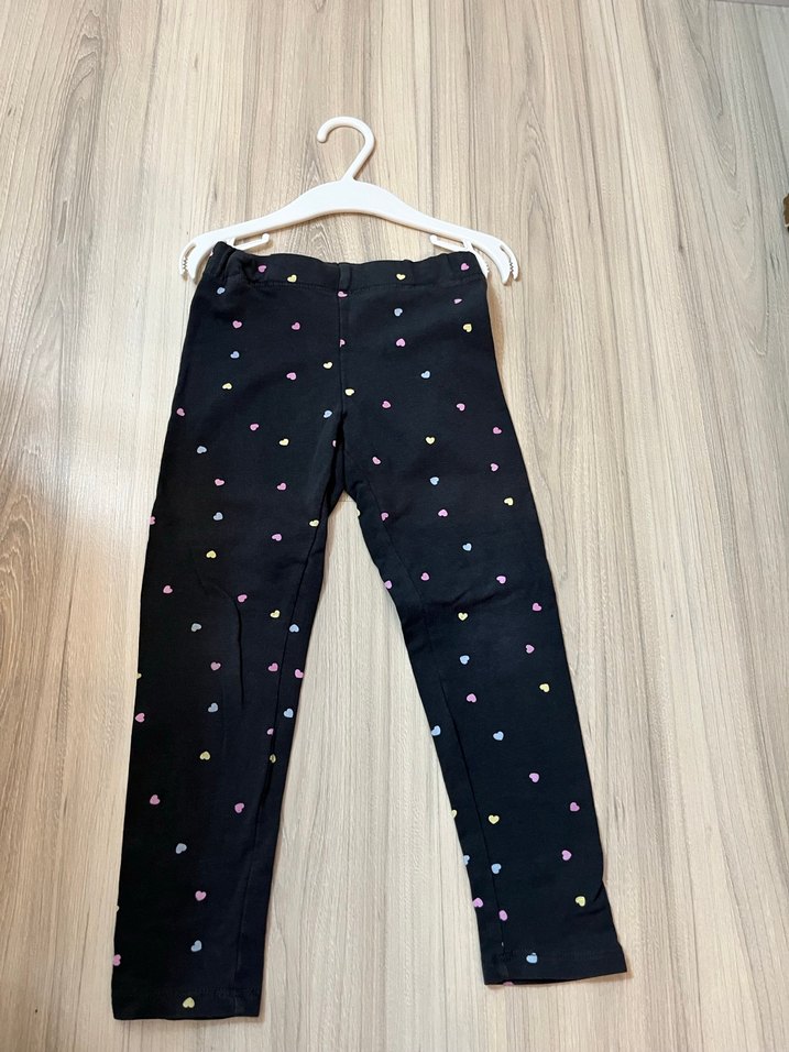 Koyu renkli, çok renkli kalp desenli kız çocuk taytı. Rahatlık için lastikli bel bandına sahiptir. Trendy günlük giyim için uygundur.