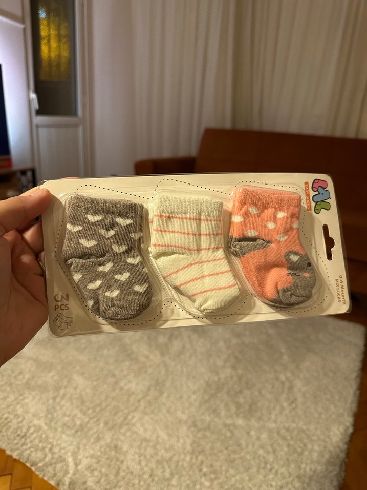 Kız çocuklar için çok renkli, kalp ve çizgi desenli 3 çift yumuşak triko çorap seti. Rahat ve konforlu kullanım sağlar.