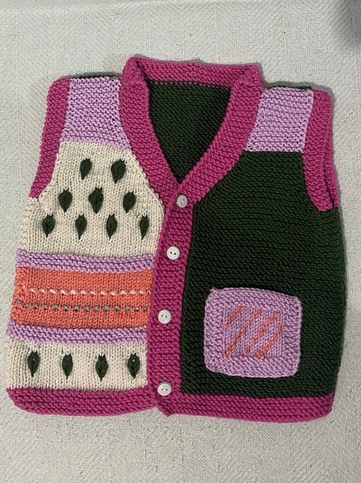 Kız Çocuk Çok Renkli El Örgüsü Yelek