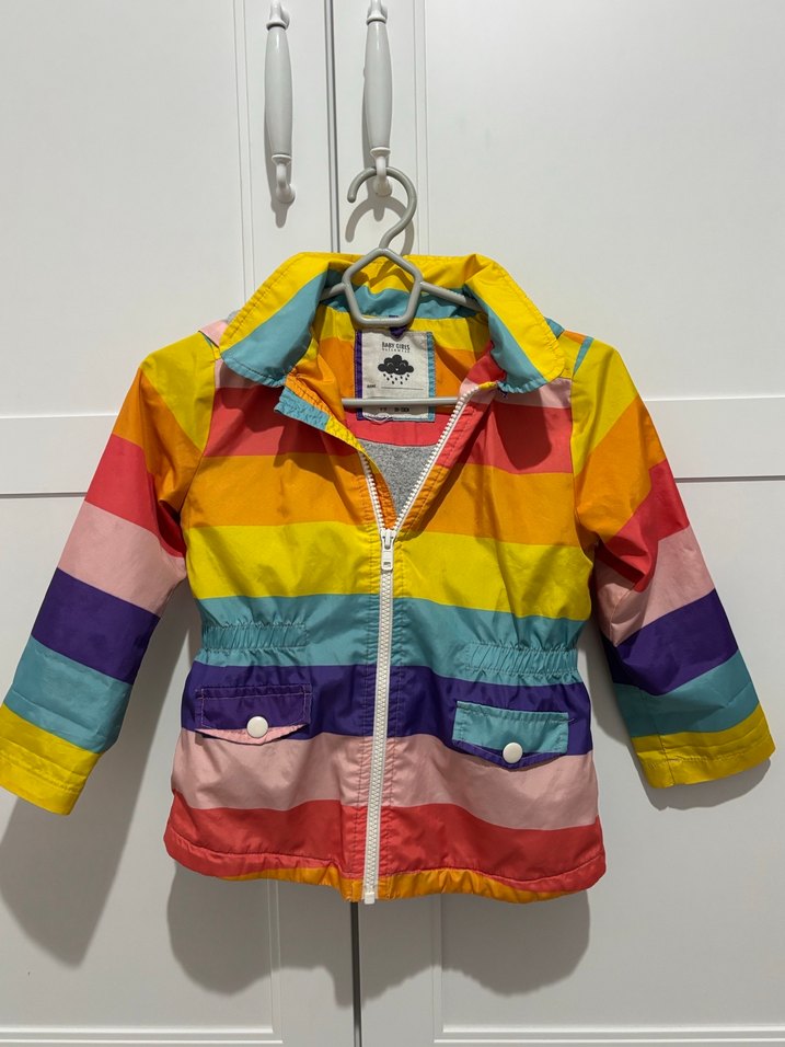 Renkli desenli, fermuarlı ve kesimli kız çocuk yağmurluğu. Yumuşak fleece kumaştan, modern ve rahat bir tarz sunar. Defosuz çok tatlı bir çeket :)