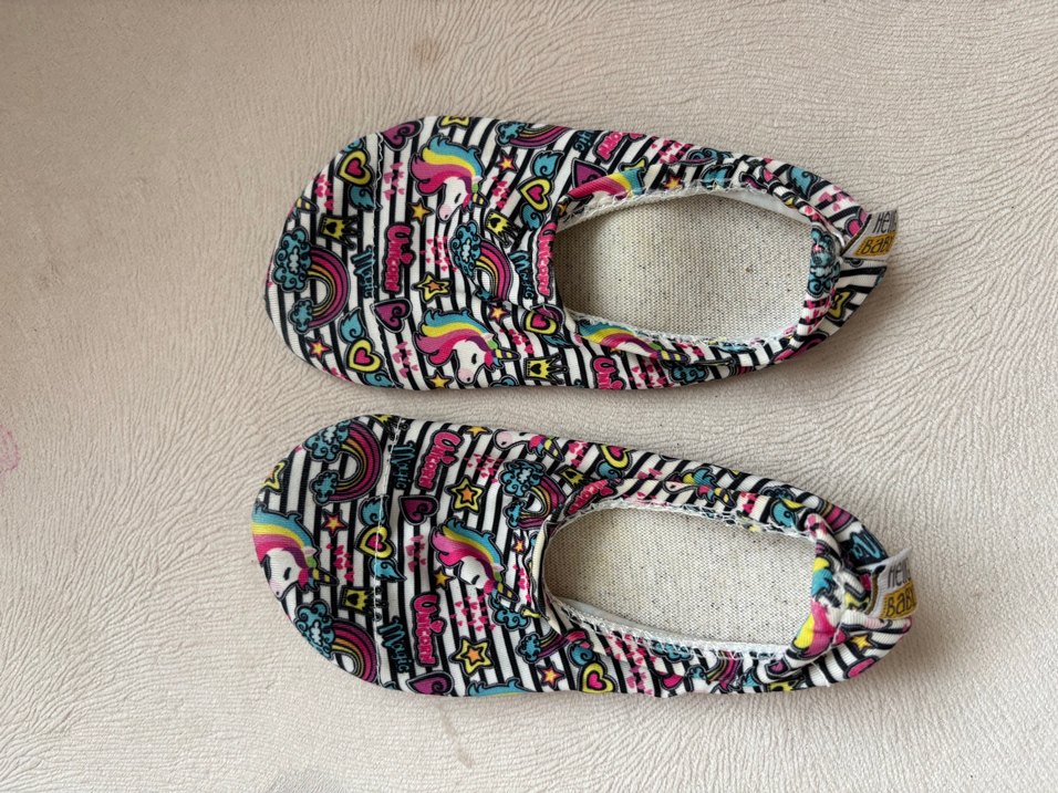 Kız çocuk için çok renkli desenli, pop kültür tarzında havuz ve deniz ayakkabısı.Esnek kauçuk malzemeden üretilmiştir. E bebekten alındı. 16cm #havuzayakkabısı
