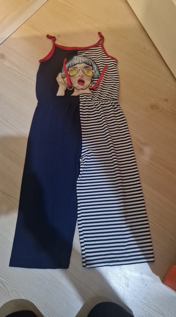 Kız çocukları için ip askılı, baskılı ve püskül detaylı, sentetik kumaştan yapılmış, dar kesim çok renkli tulum.