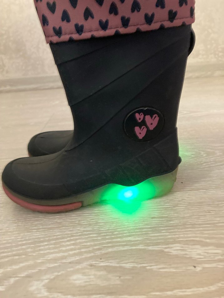 Kız çocukları için çok renkli kauçuk botlar, yapışkanlı kapanış, baskılı kalp desenleri ve ışıklı tabanlarla punk rock havası sunar.