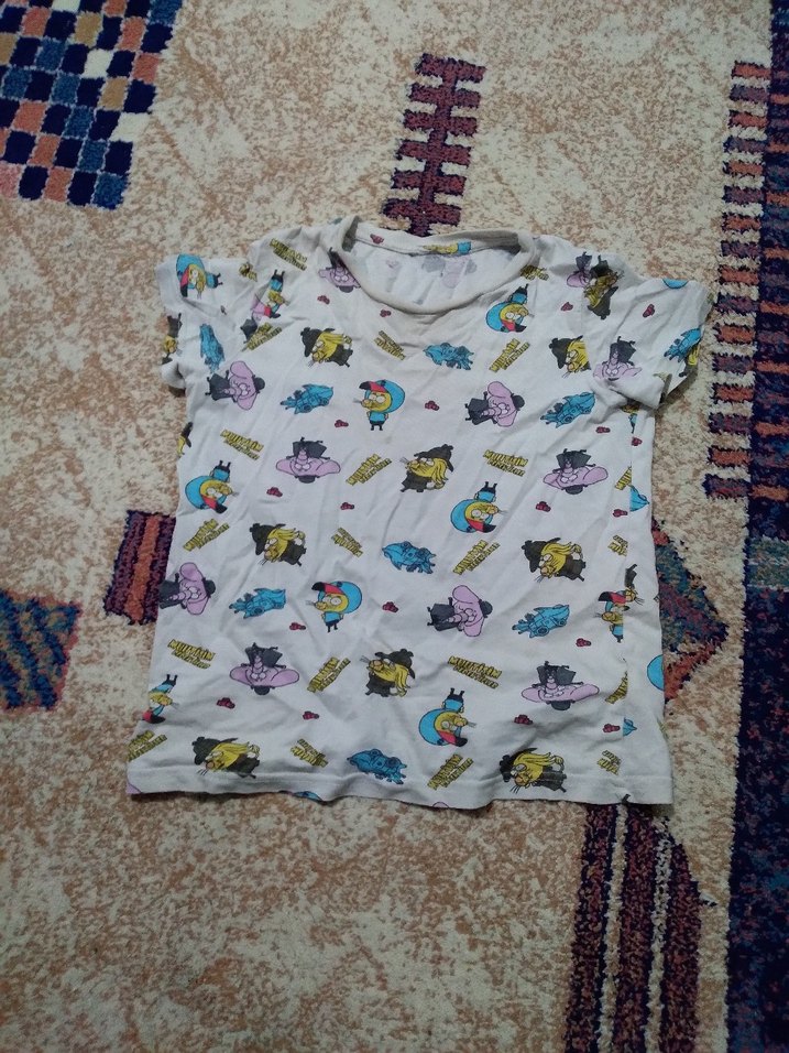 Kısa kollu, bisiklet yaka kız çocuk tişörtü, pamuk kumaştan ve bol kesimlidir. Çok renkli desenleri ve örme detaylarıyla günlük kullanıma uygundur.