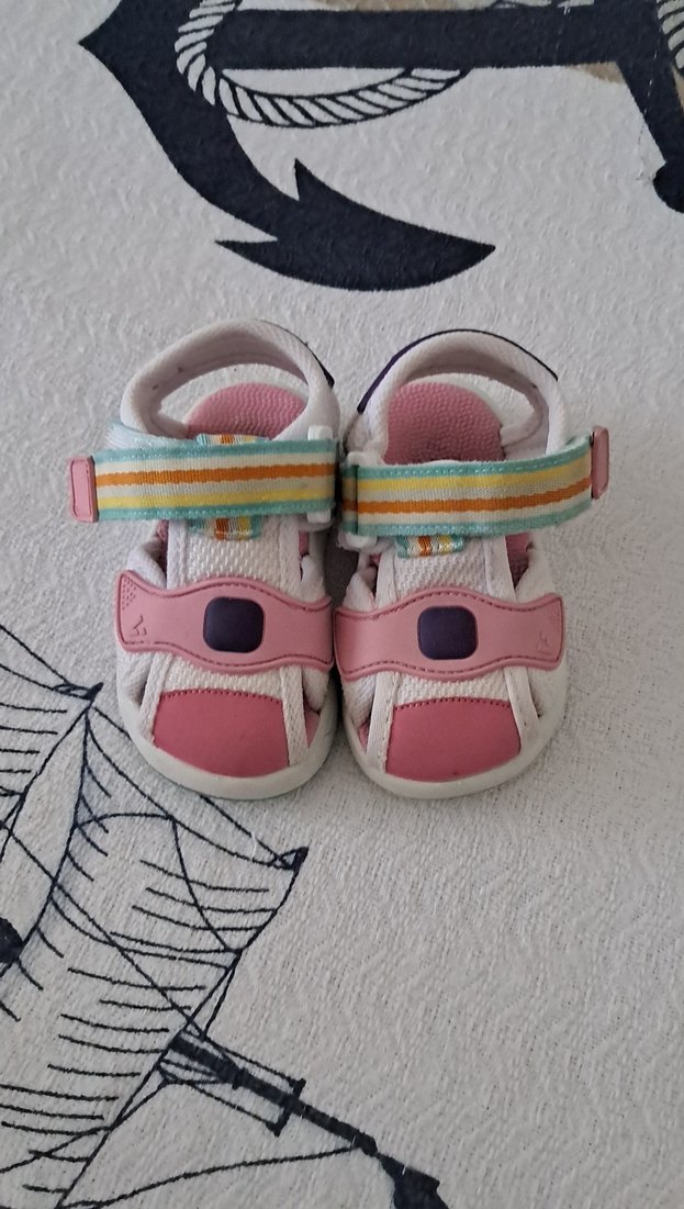 Kız çocukları için çok renkli, nakış detaylı ve cırtcırtlı bantlı sandalet. Kauçuk tabanlı, rahat sokak stili için uygundur. az kullanılmış temiz üründür.