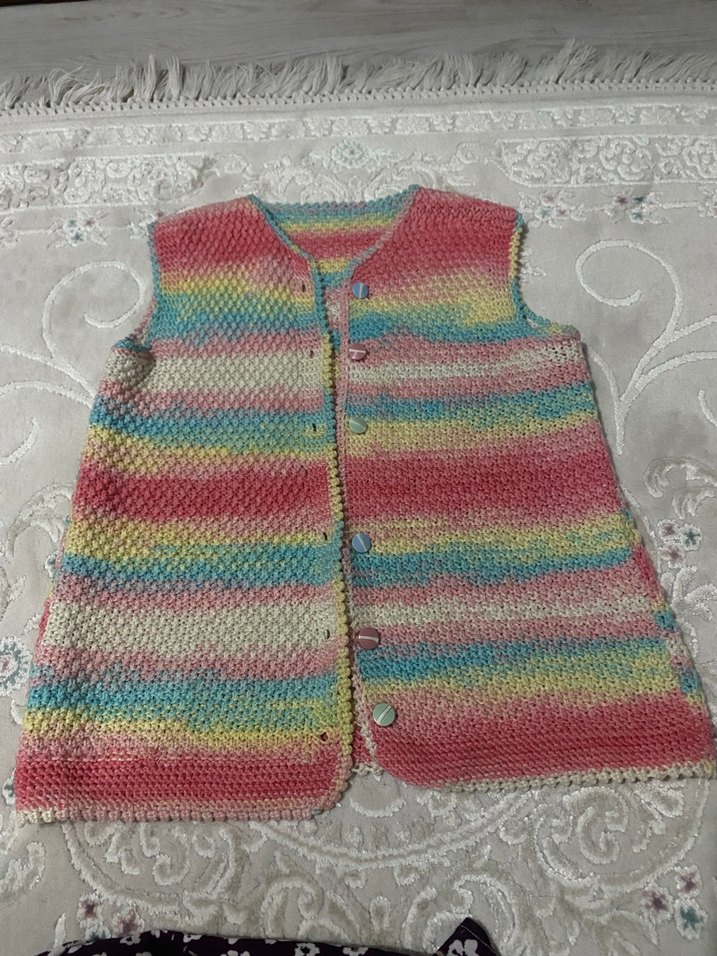 Kız Çocuk Çok Renkli Örgü Yelek