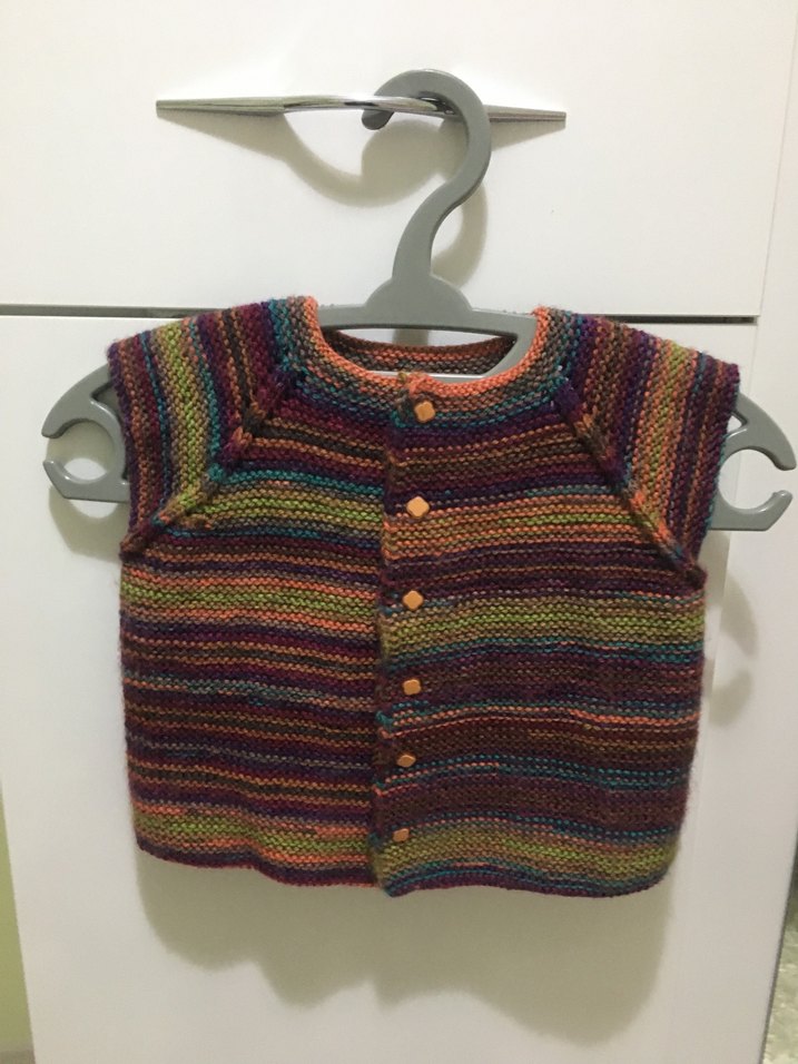 Kız çocuklar için çok renkli, örgüden yapılmış, salaş kesim, kolsuz ve yuvarlak yakalı yelek. Bohem, hippie ve retro tarzını yansıtır.