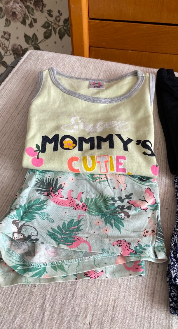 Kolsuz, straplez kız çocuk atleti, pamuklu ve bol kesimdir. "CUTIE, MOMMY'S" yazılı renkli baskı ve desenlere sahiptir. Örgü dokusu bohem ve retro stili yansıtır.