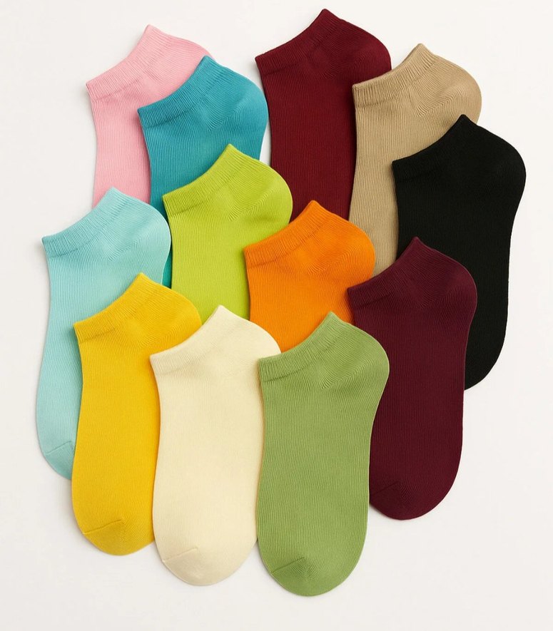 Kız çocuklar için çok renkli, pamuklu ve desen içermeyen rahat çorap seti.