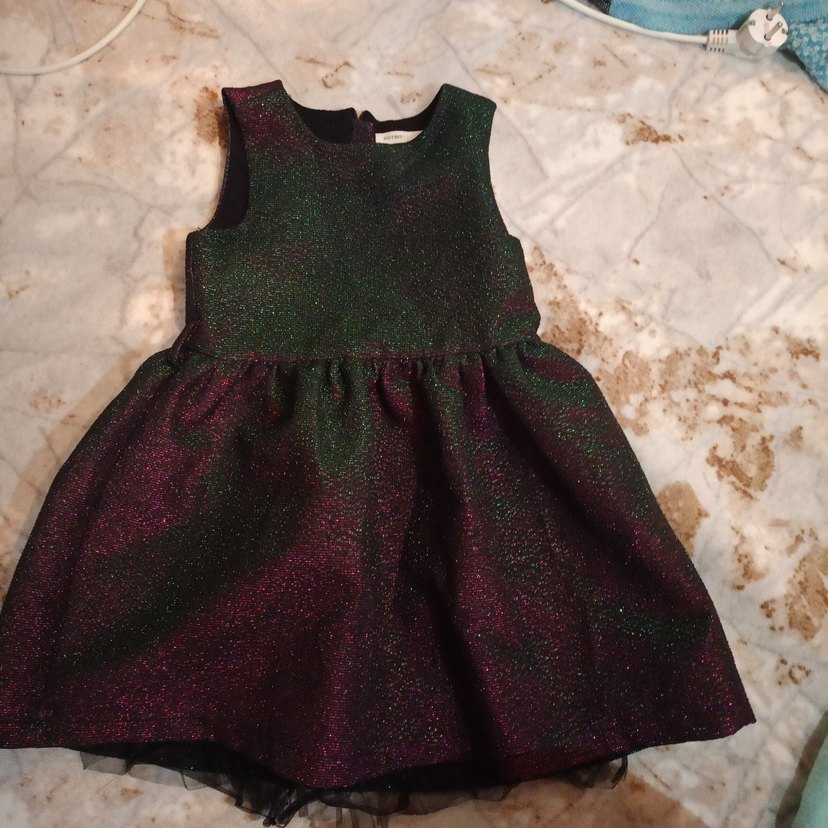 Koyu çok renkli ışıltılı kumaştan yapılmış, kolsuz ve straplez yakalı, vücuda oturan kız çocuk elbisesi. Moda tutkunları için ideal bir tasarım. ✨ 5/6 yaş