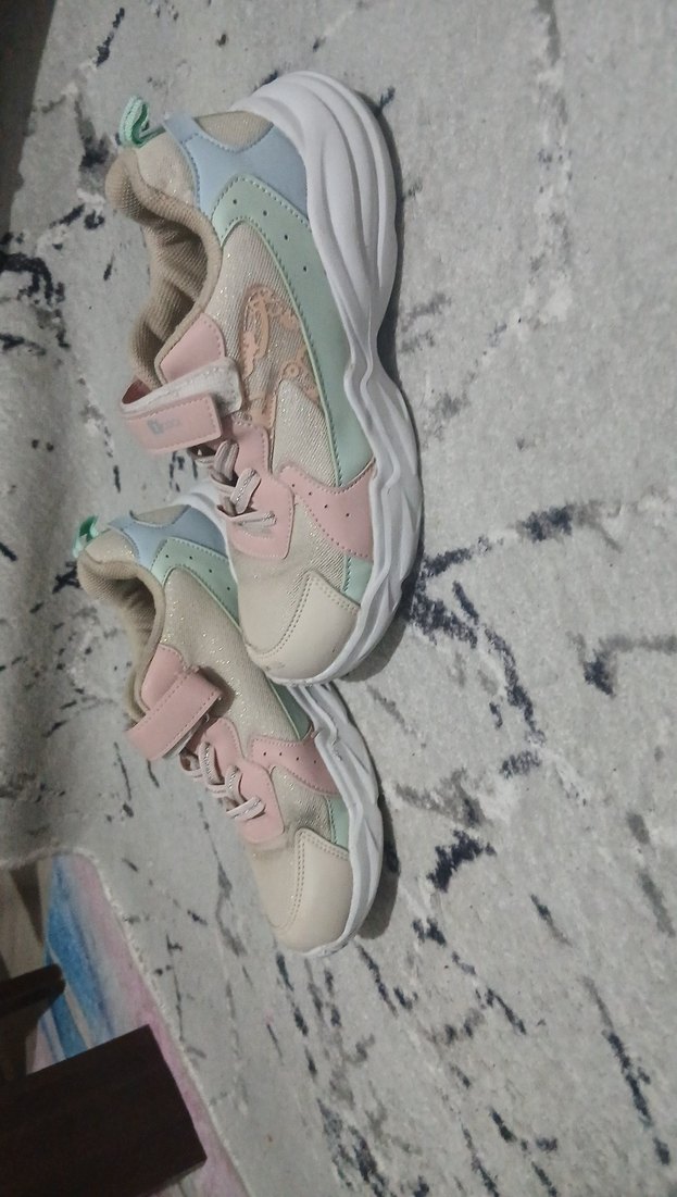 Kız çocukları için çok renkli pastel tonlarda, bağcıklı ve cırt cırtlı, lastik tabanlı spor ayakkabılar. 35 numara