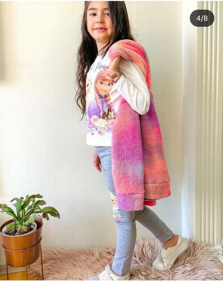 Bol kesim, çok renkli pastel tonlarda, tie-dye desenli, yumuşak peluş kumaştan kız çocuk sweatpants. Kürk detaylı ve rahat crew neck tarzında, sokak modasına uygun.