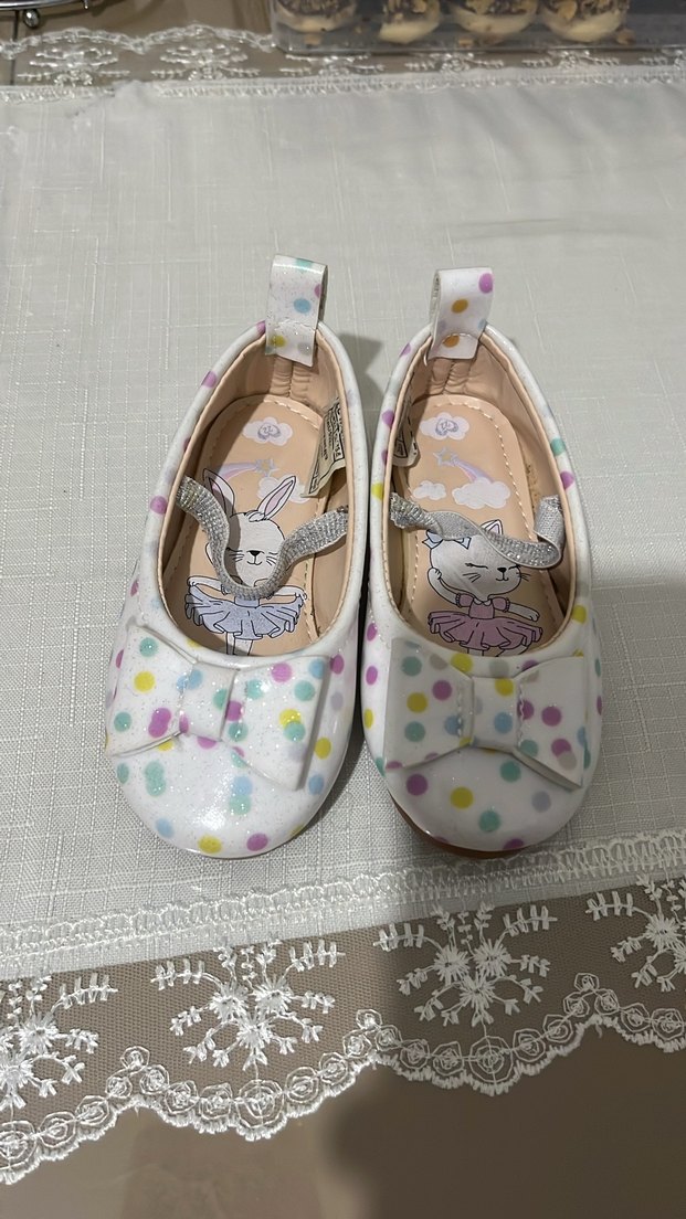 Kız Çocuk Çok Renkli Puantiyeli Fiyonklu Babet