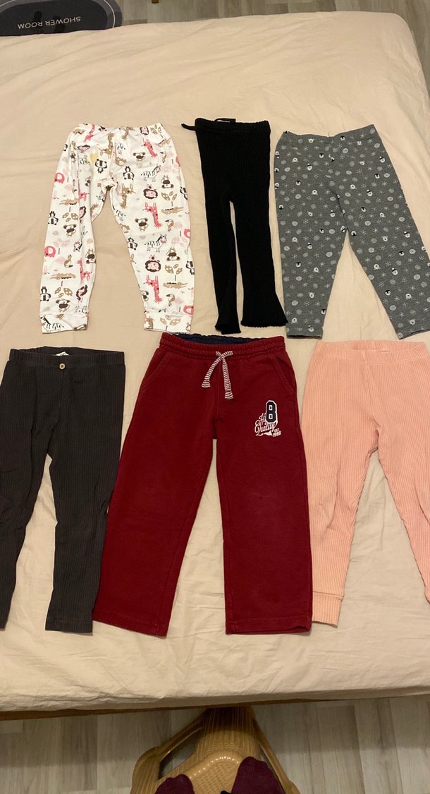 Çok renkli ve desenli, bol kesim kız çocuk eşofman altları. Rahatlık için elastik bel bantlı, yumuşak ve sıcak kumaştan üretilmiştir ev içi giyim siyah olan bir kere giyildi 2,5 3 yaş rahat olur hepsi 120 .